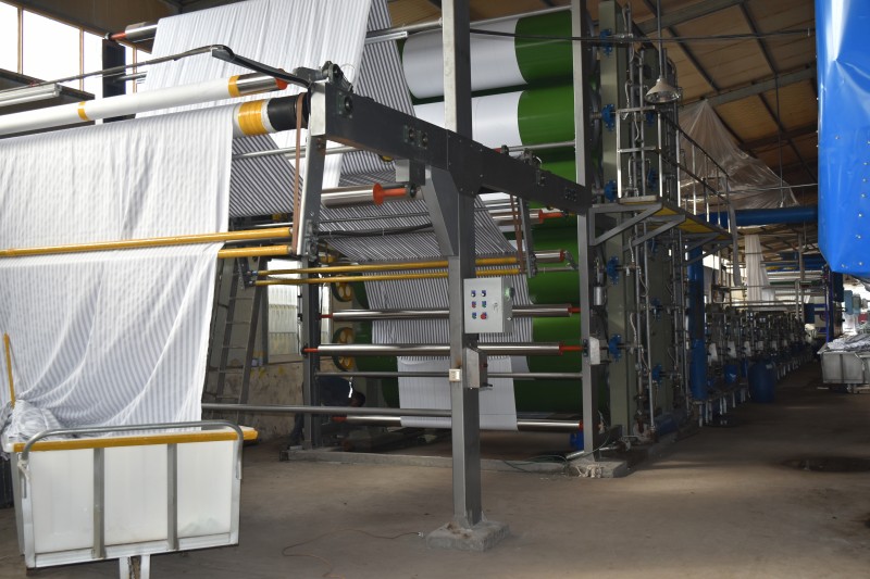 3.4、進(jìn)布端擴(kuò)幅彎輥直徑為Φ125mm,織物平穩(wěn)運(yùn)行,無褶皺。并設(shè)有不銹鋼噴淋管。